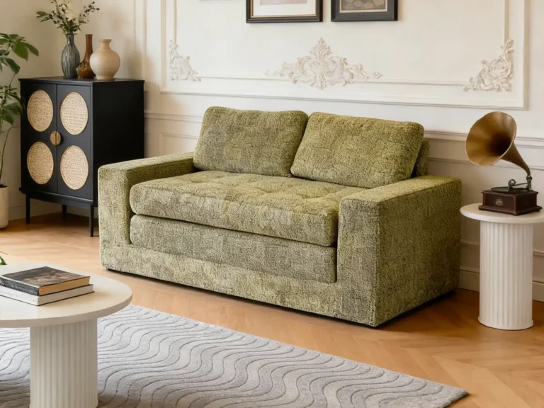 Olive Green Textured Fabric Two-Seater Sofa