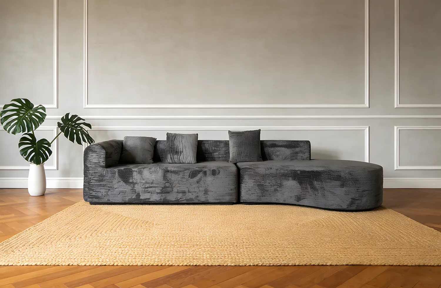 Bright White Curved Plush Sofa