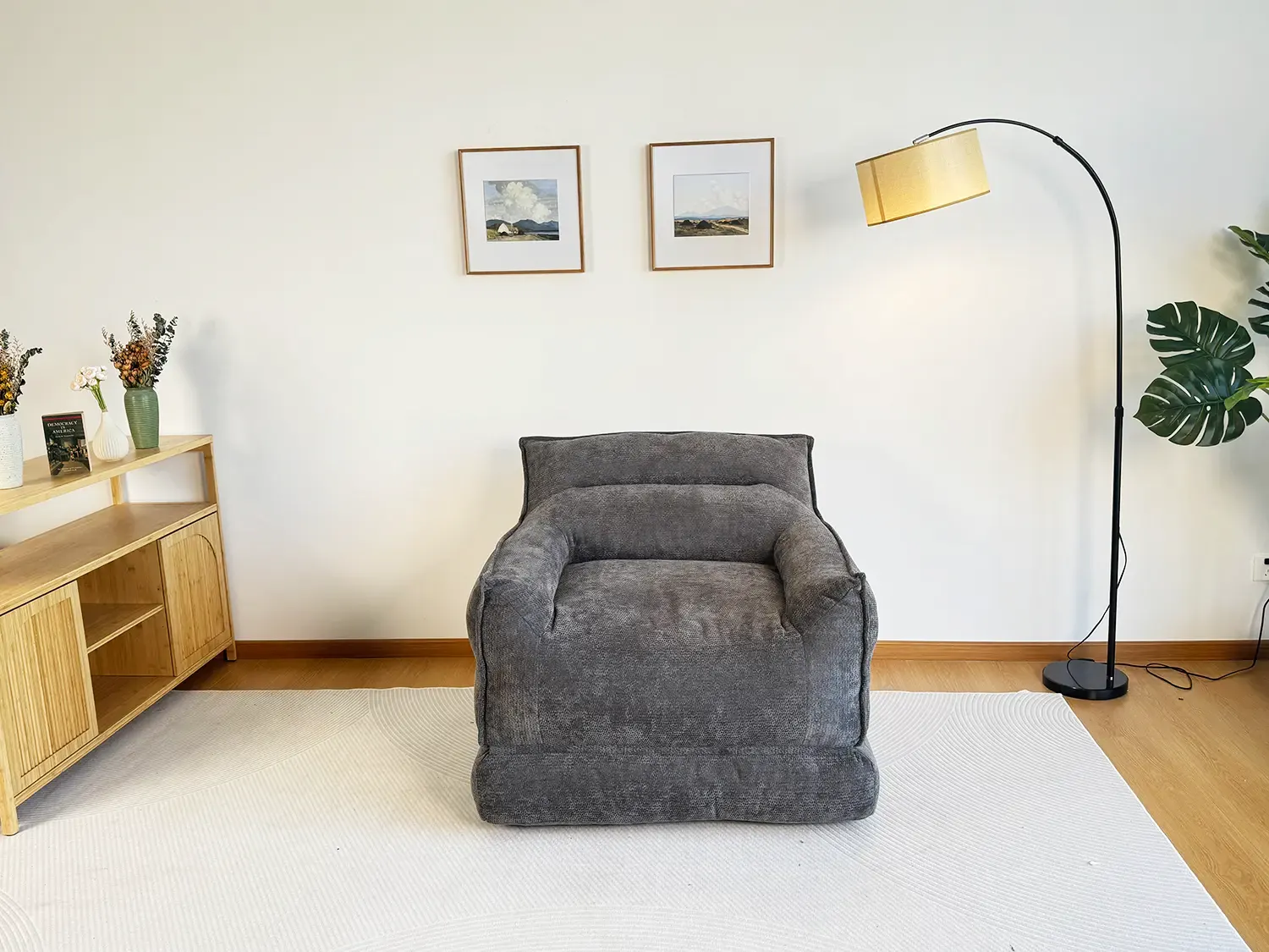 Charcoal Gray Plush Single-Seater Lazy Sofa