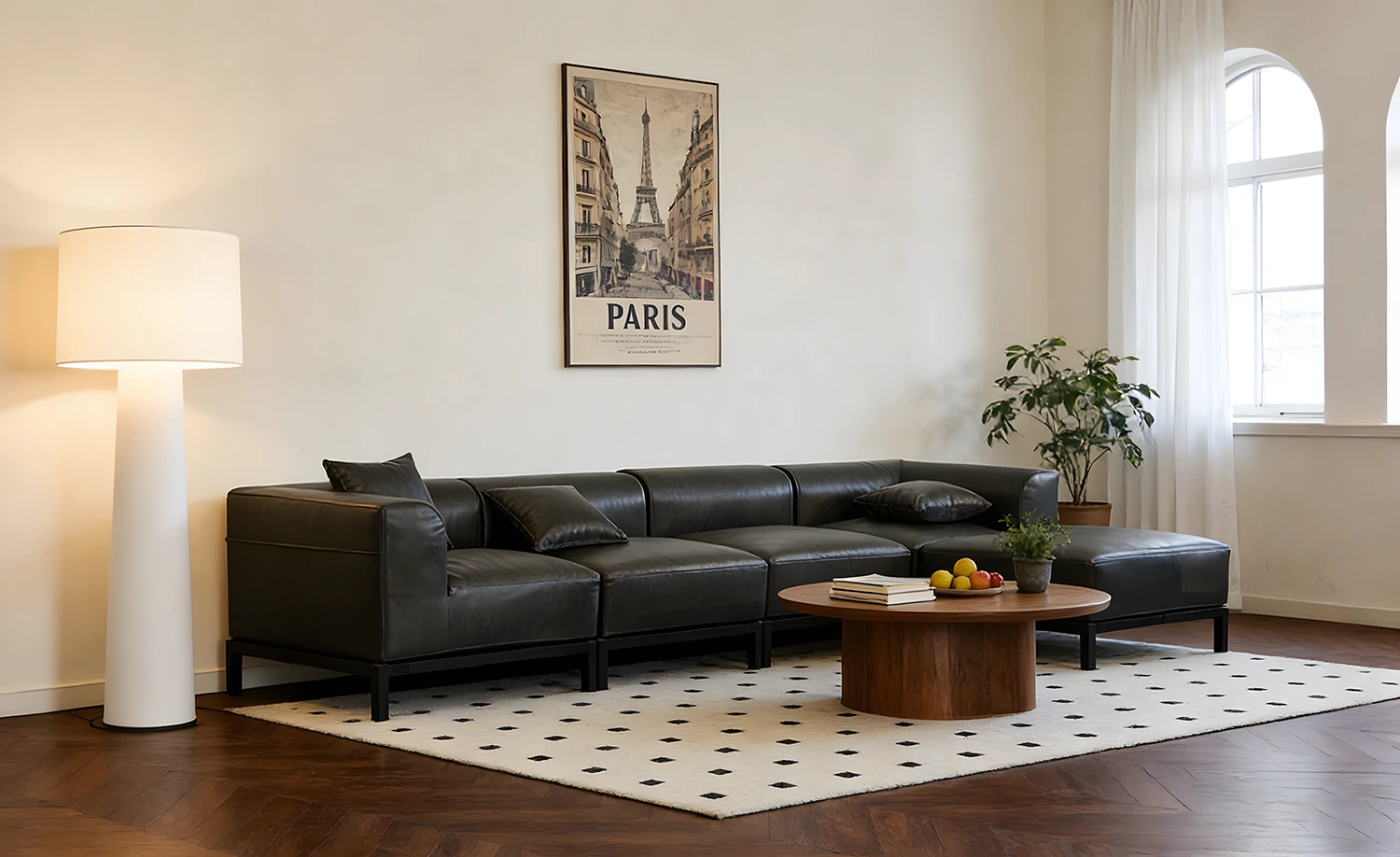 Minimalist Black Leather Modular Sofa