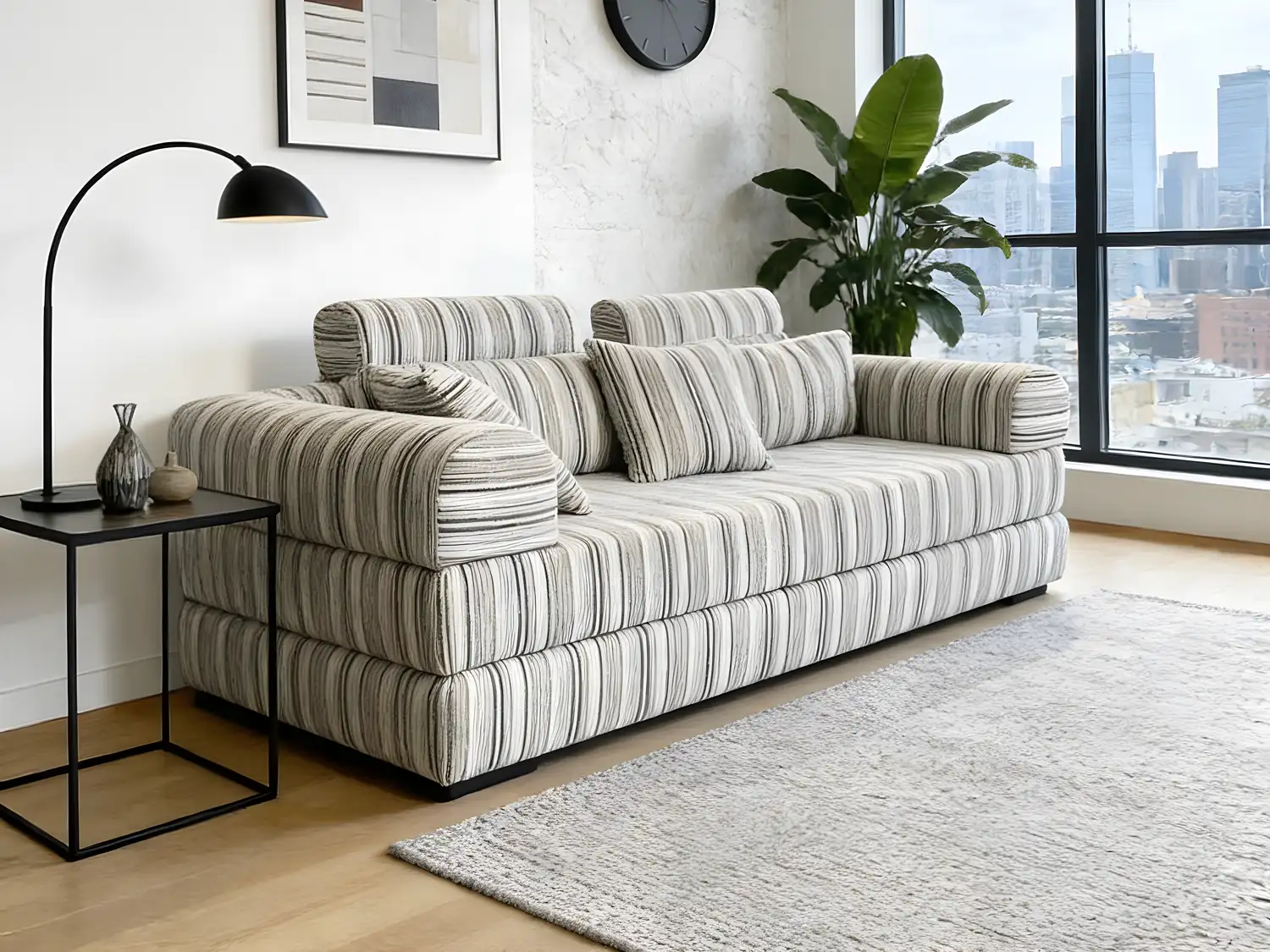Minimalist Striped Fabric Modular Sofa